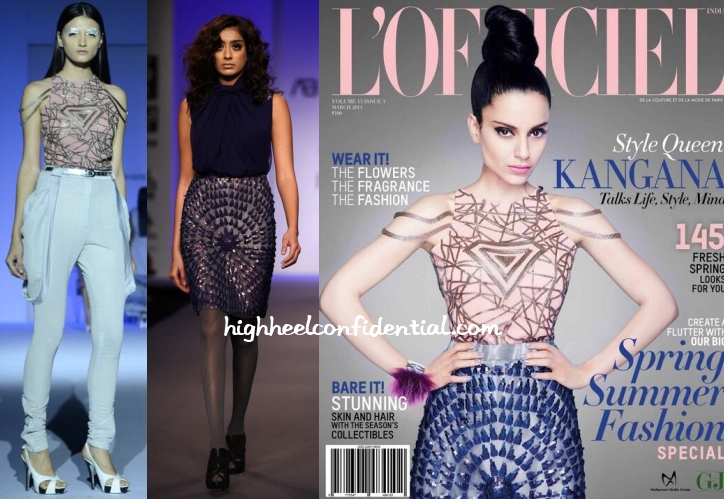 Left: Sonakshi Sinha on L’Officiel In Dior Dress & Cuff With Da Milano Bag