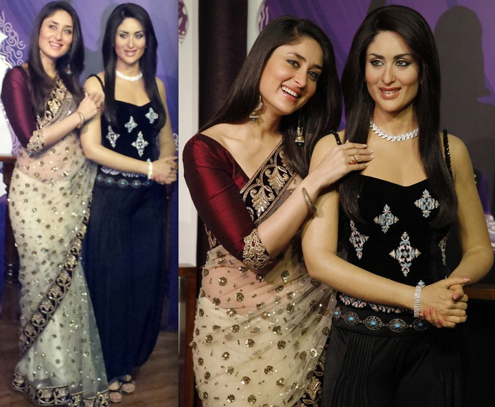 Kareena looked beautiful in her Manish Malhotra sari at the unveiling of her statue at Madame Tussauds. Speaking of which, the wax statue does no justice to the gorgeous actress, not in this picture anyway.