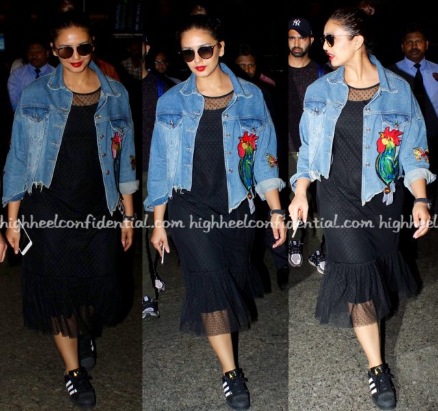 Ms. Fernandez has been busy with A Gentleman promotions this week and of the three non-desi looks that we saw her in, loved the striped jumpsuit one on her.
