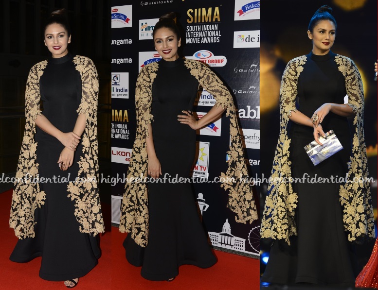 Wearing a Mayyur Girotra, Huma attended day one of SIIMA. Hair in a twist top knot, her look was finished out with an oxblood lip and a statement ring.