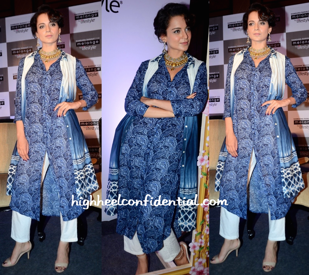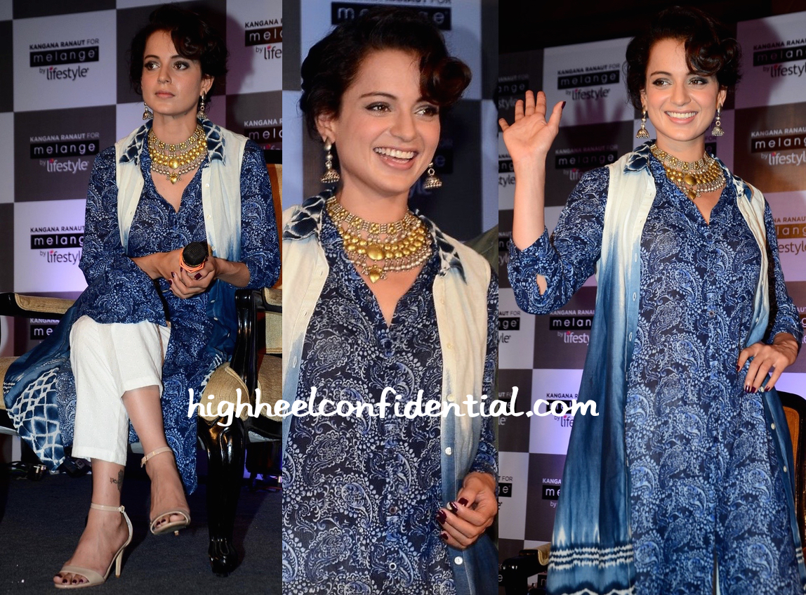 Wearing a Topshop dress with Miu Miu sandals, Kangana jetted out of Mumbai on Wednesday to attend an event in Bangalore. The night before she arrived in Mumbai wearing denims and on Thursday, a desi look from Melange with a Strathberry bag.