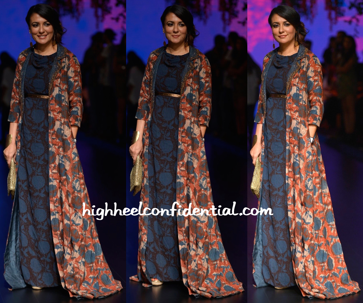 Wearing Anita Dongre Grassroot separates, Mini attended the designer’s presentation in Mumbai. Adding a belt for definition, she finished out the look with a wispy updo and gold-tone accessories. Like what you see?