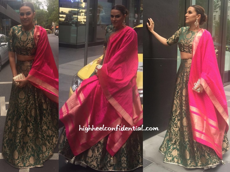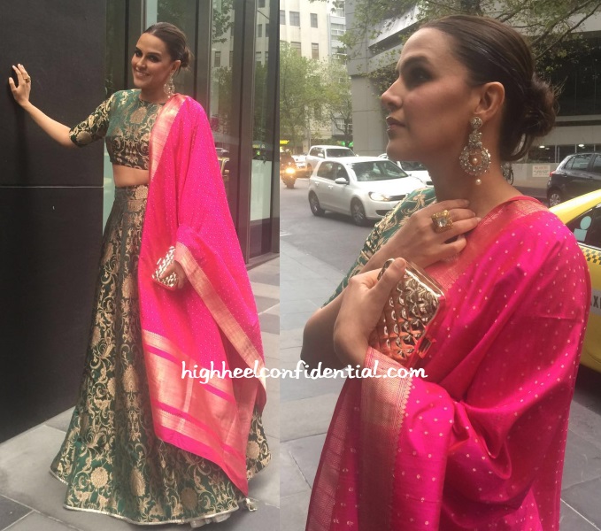 Neha served as the celebrity judge at the Miss India Australia pageant this weekend where she was seen doing desi in a green Payal Singhal lehenga.