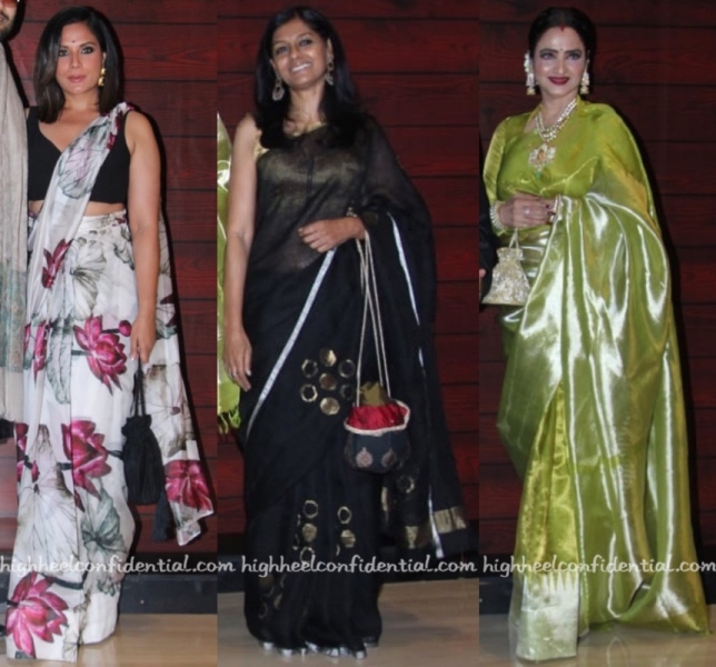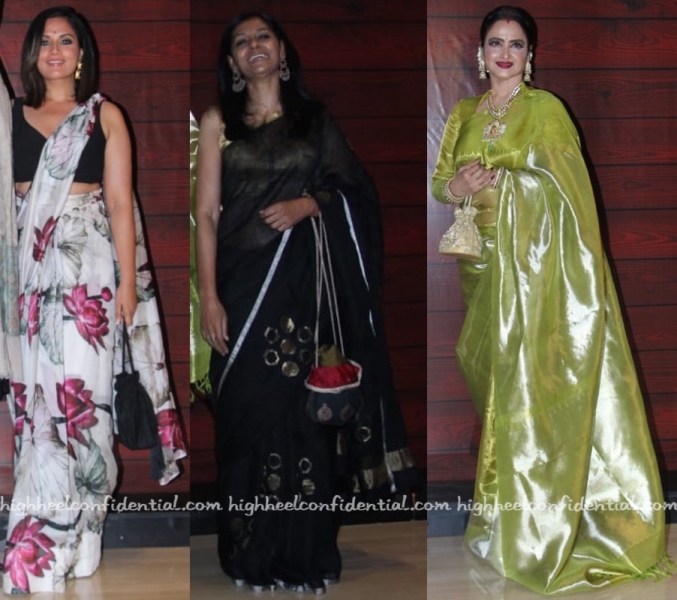 Wearing saris their own way, these lovely ladies attended a recent soirée in Mumbai. Whose look do you find yourself gravitating to the most?