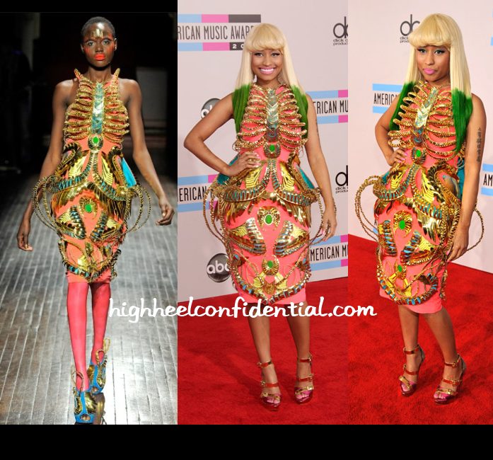 We thought it would be Lady Gaga who would do the honor of wearing a Manish Arora Spring 2011 first, but it was Nicki Minaj who beat Gaga to it!