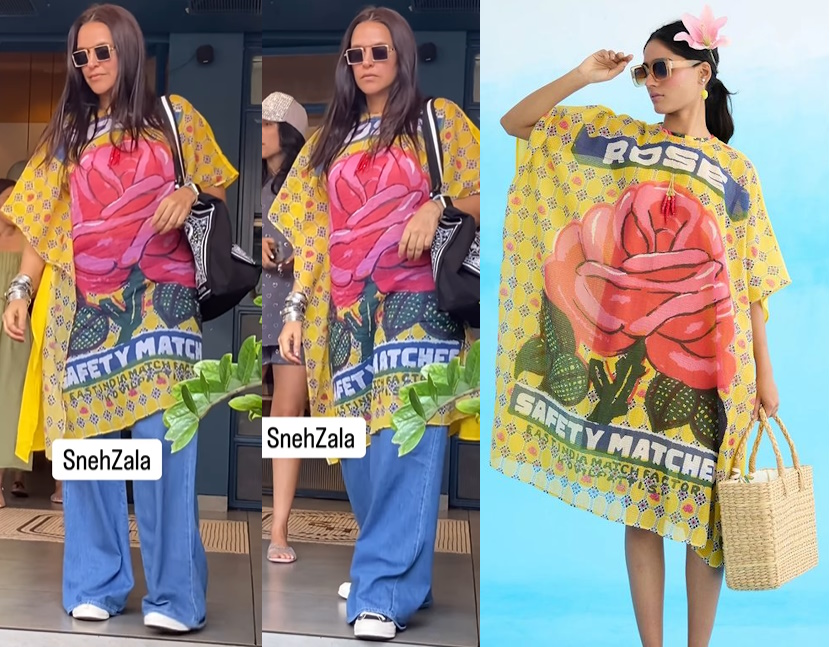 While grabbing lunch with friends, Neha was spotted wearing a Nikasha tunic with baggy jeans, sneakers and a printed cloth tote. This was a very boho look but the question is, like the tunic?