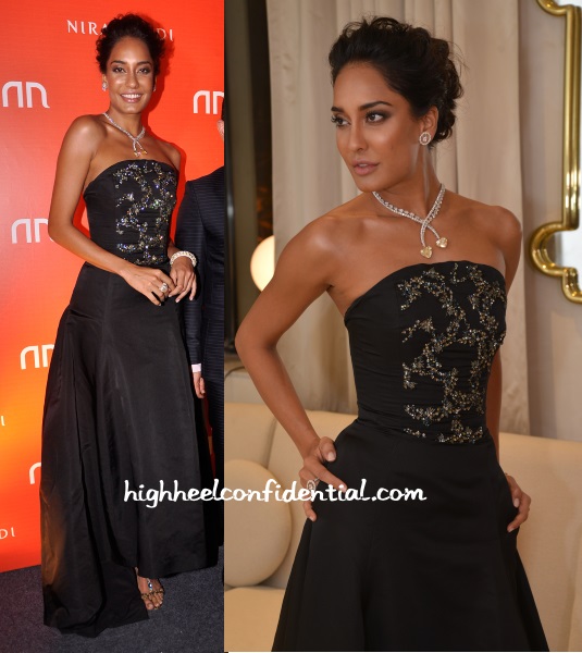 At the launch of the Nirav Modi jewellery store in Mumbai, brand ambassador Lisa sparkled in a black Dior gown and jewellery from the brand which also included a two heart diamond necklace.