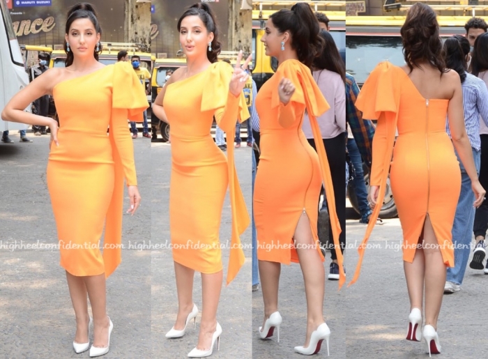 For her two recent outings, Nora teamed her off-white outfits with designer bags (Chanel first and Louis Vuitton later) and white Christian Louboutin heels. Which do you like her more in? The separates have our vote.