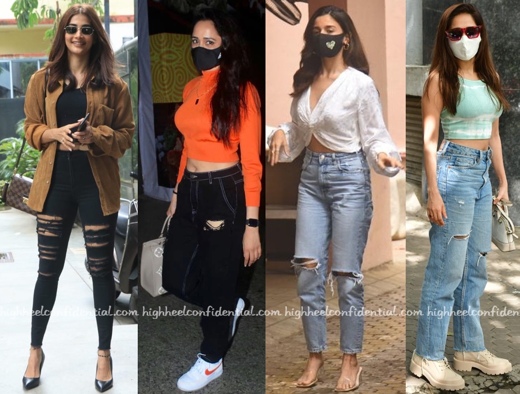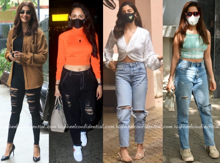 Teaming their crop-tops with distressed denims, these ladies stepped out in Mumbai recently. While Pooja and Alia dressed up their separates with heels, Pragya and Nushrat kept things easy in their sneakers. Whose look stood out to you the most?