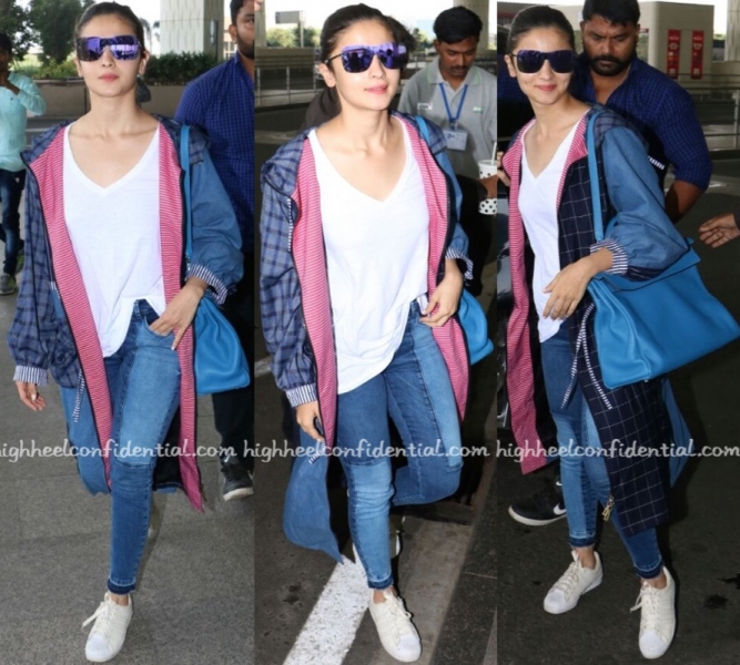 Teaming an Only sweatshirt with a metallic mini skirt from Madison, Aditi attended two back-to-back events last evening. With her hair pulled back in to a ponytail, she rounded out the look with Tresmode sneakers.