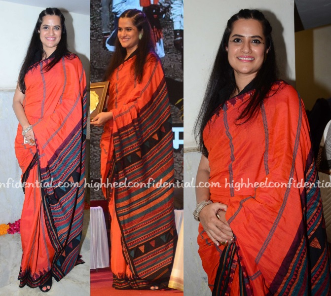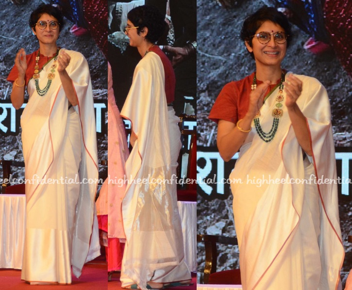 The Paani Foundation, an initiative started by Aamir and Kiran, held its award ceremony for a water saving competition on Monday evening. It was interesting to see Ms. Rao’s subtle ode to the Indian National Flag and the day by way of her sari. If you look closely, you’ll notice the orange and green piping on the border.