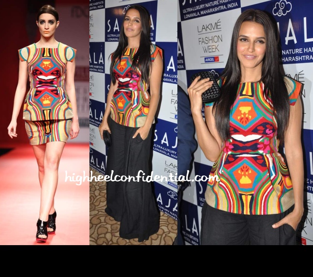 Right: Neha Dhupia At Manish Malhotra’s Showing At LFW A/W 2013