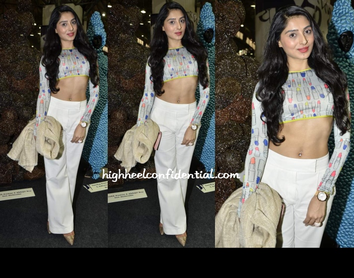 Pernia attended day one of WIFW wearing a cropped lipstick print top from Masaba’s debut collection for Satya Paul. While the white pants helped downplay the look, it wasn’t enough. There was just too much midriff which got distracting.