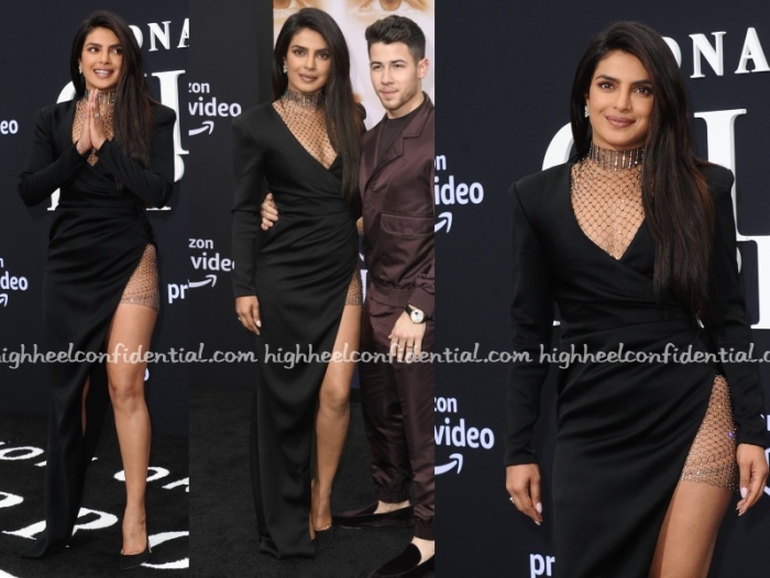 Priyanka lent her support to Nick at the premiere of The Jonas Brothers’ Chasing Happiness documentary in Los Angeles. For the appearance, she chose a sultry gown by Galia Lahav featuring chainmail inserts at the neck and slit.