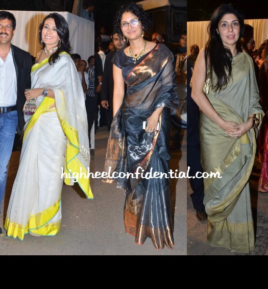 Boman’s son’s wedding reception really brought a smile to our face. Instead of seeing loads and loads of OTT/glitzy saris, we saw a lot more of traditional weaves. Our favorites were, Mini and Kiran instantly (loved them!) but we had to feature just about everyone else. You’ve already seen Shahana and Konkana here.