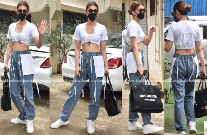 For her recent two outings, Kriti kept things super casual with her choice of outfits, teaming both separates and the dress with a roomy Saint Laurent tote and white sneakers. Like her off-duty style?