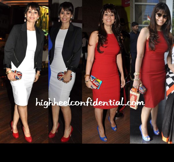 Of the two ladies to wear abstract Ikat print dresses, Shaheen had our vote. We much preferred her dress (love the colors) and the way she accessorized it. Vidya’s choice of footwear absolutely killed the look.