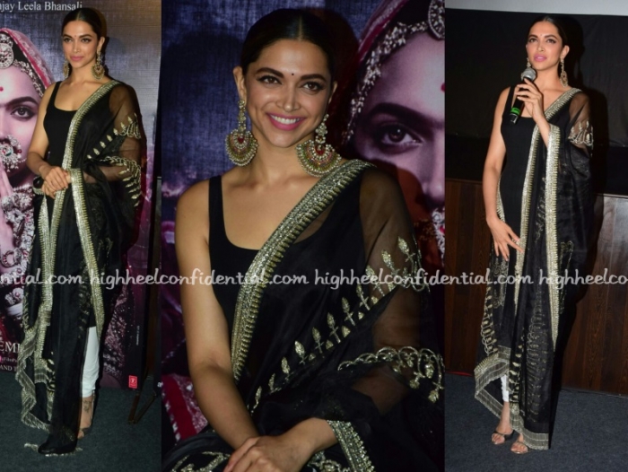 Deepika visited a TV shot for promotions of Padmavati on Thursday wearing a striped gold sari by Raw Mango and jewellery from Tanishq. Loved everything about the look and if that drape was just an inch higher, I would literally be swooning.