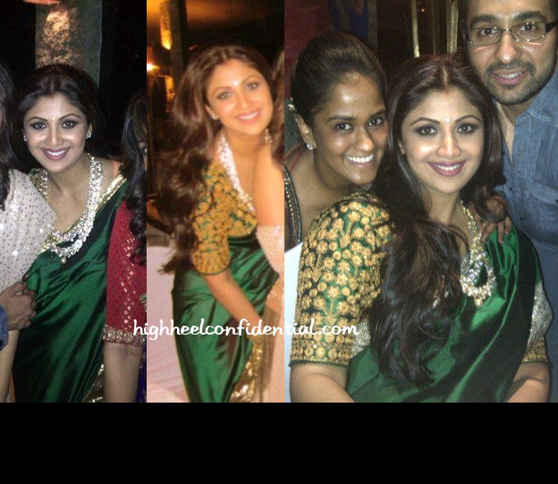 Shilpa and hubby Raj hosted a dinner in honor of Shane Warne and gf Liz Hurley. Shilpa went casual in a blue paisley silk Marciano top paired with blue jersey pants and a Bvlgari serpent watch.