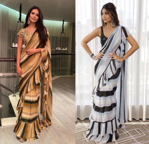 Shilpa taped episodes of Super Dancer, wearing two sari inspired outfits.