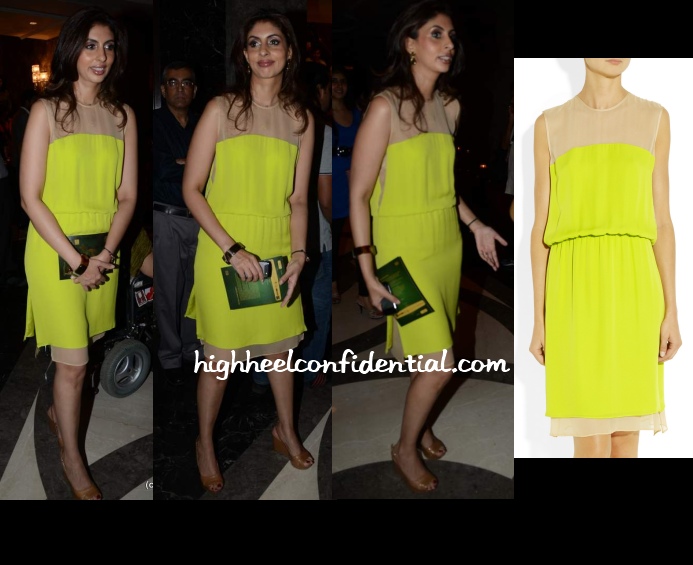 Opting for a demure look in a purple Abu-Sandeep sari, Shweta attended an Art Exhibition featuring paintings inspired by Amitabh Bachchan. A simple look but quite striking, don’t you think?