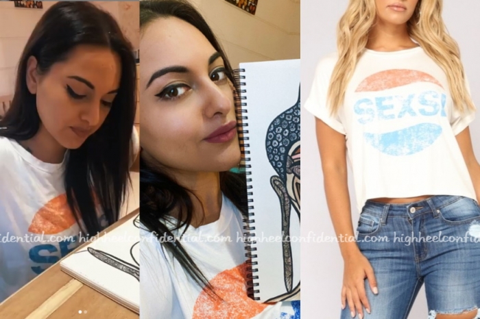 Sonakshi shared a video of her completing an art piece wearing a Fashion Nova featuring the very recognizable Pepsi logo but with some NSFW wording. 😛