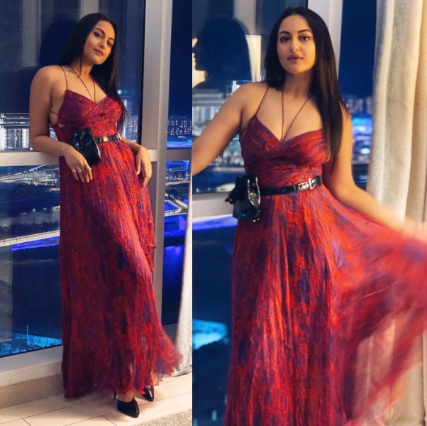 Sonakshi shared pics of herself on social medi wearing a Saaksha & Kinni pleated dress. Anyone else think the shoes and belt bag don’t belong here?