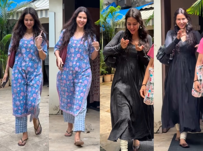 Sonam was spotted keeping it simple in kurtas while out and about first in a blockprint straightline kurta and then in a black churidaar sleeves kurta and white churidaar bottoms. Loved the latter especially paired with those leather juttis. Been a while since I saw this classic combo.
