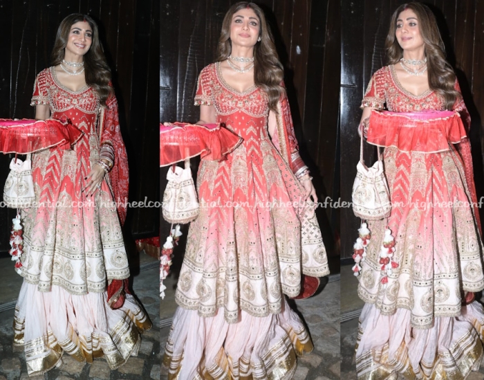 Friday say one Kapoor (Mira) wearing a Kapoor (Tamanna Punjabi) and celebrating Karva Chauth at a Kapoor’s (Sunita) home. Ok, now that I got that lame joke out of the way, what did you think of Mira’s sari?