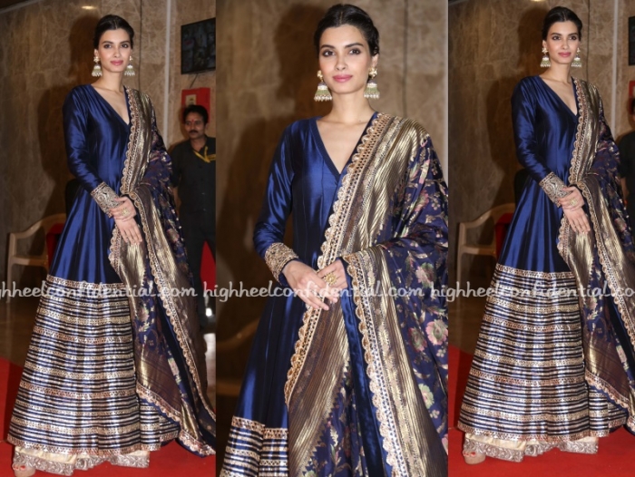 Vicky and Katrina attended the Taurani Diwali party with Vicky opting for a black kurta and jacket paired with white churidaars and Katrina wearing an Anita Dongre. The Dongre itself as interesting because it was a cross between a gharara and a saree and while am still warming up to it (the design), she looked nice and Vicky looked quite sharp!