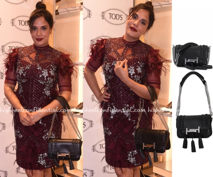 At Tod’s A/W 17 collection preview in Mumbai, Huma was photographed in an Adelyn Rae dress. Strappy sandals, vintage inspired hair and dark-toned lip color rounded out the actor’s look. Love the hair and make-up on her.