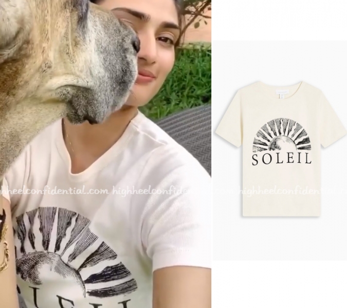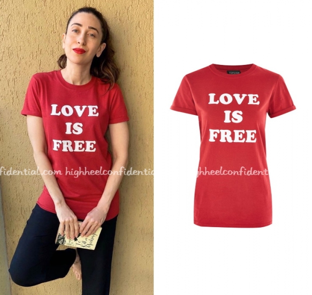 Karisma shared a pic on social media today wearing a Topshop tee and black bottoms. What has been your quarantine home outfit?