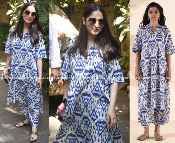 Yami was spotted out and about wearing a printed kurta set from TrueBrowns with green kolhapuri chappals. She sure looked good in it.