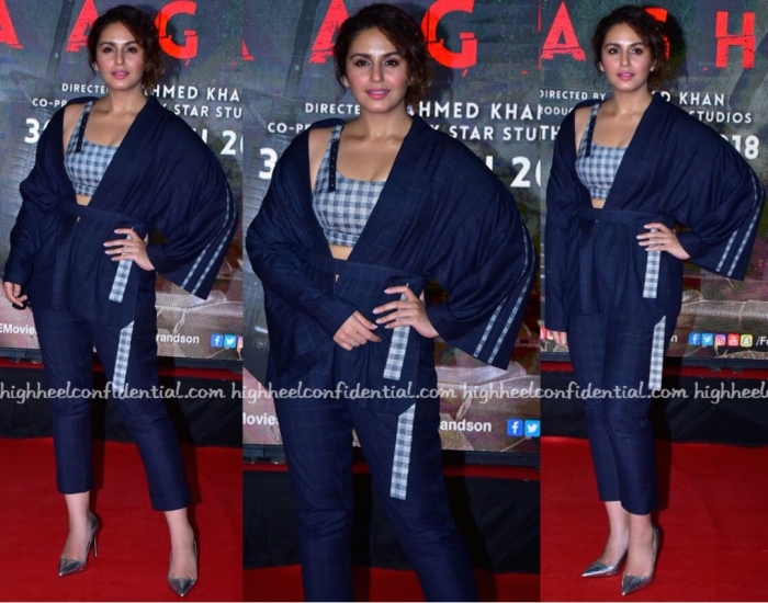 Wearing separates from Two Point Two, Huma attended a movie screening in Mumbai recently. With her hair in an updo, she rounded out the look with pink lip color and a pair of metallic Zara pumps.