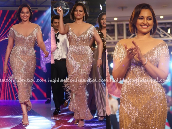 For her appearance at a recent event, Jacqueline picked a dress by Yousef Aljasmi to wear. Her accessories for the occasion included Diosa jewelry and sandals by Ego. We’ve seen Jacqueline do a version or two of this look in the past, but what it lacks in novelty, it makes up for in impact… She wears the look well.