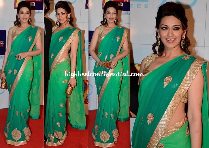 Mugdha Godse at Stardust Awards 2013 (left) and Zee Cine Awards 2013 (right)