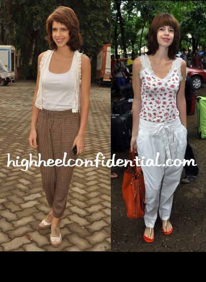 For two of her recent appearances, Kalki accessorized both times with a red flower in her hair. Which look did you prefer?
