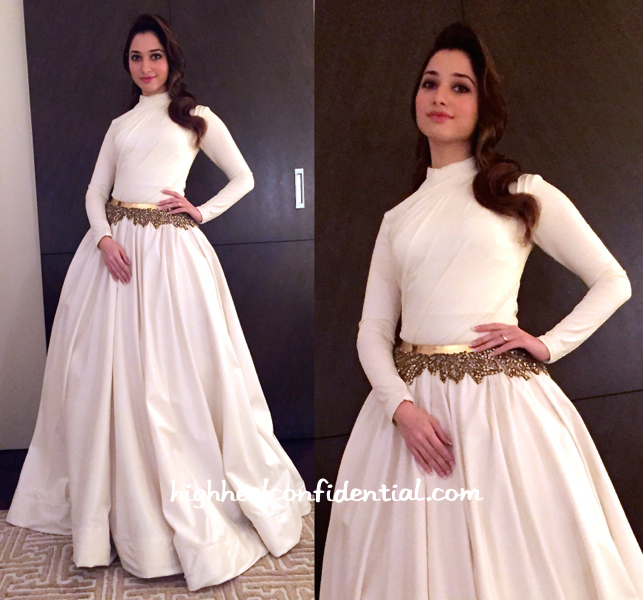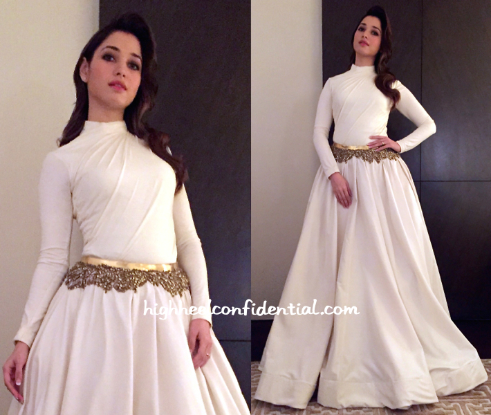 It was Shantanu and Nikhil for Tamannaah while at a recent event. Wavy hair and a bright lip is all that it took to finish out her look. While she looked lovely, can’t help but feel a tad overwhelmed with all that volume and seemingly heavy paneled hem.