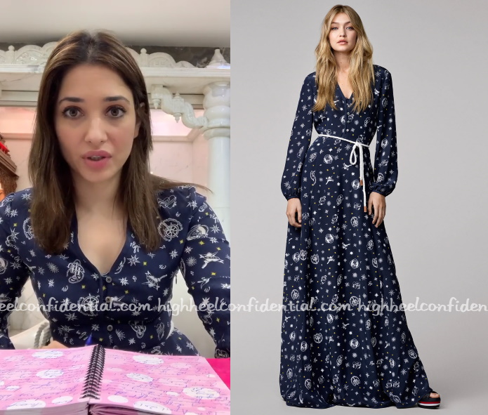 Tamannaah shared a post on social media recently and was spotted wearing a blue nautical inspired printed dress from the Tommy x Gigi collection.