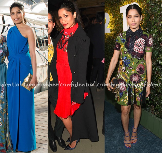Though Freida Pinto does have a soft spot for white, ivory and all shades in between, when she decides to do color, boy does she! Those glorious Gucci colors or the bold blues she favors, we are (almost) tempted to give up black!