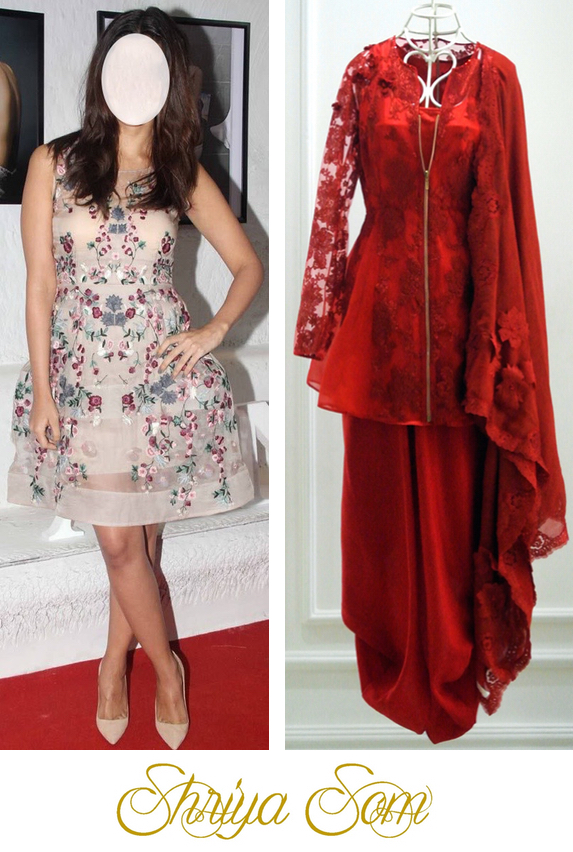 4. In the picture below (left), tell us which actor is sporting a Shriya Som dress.