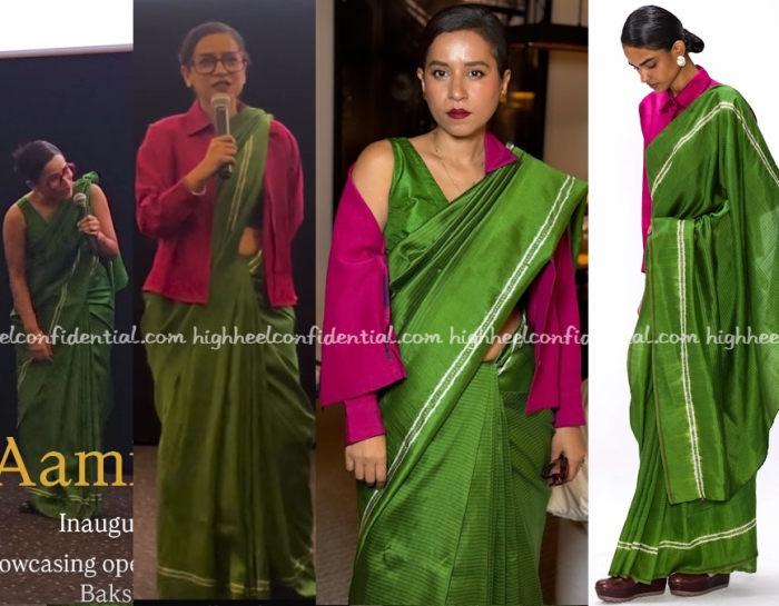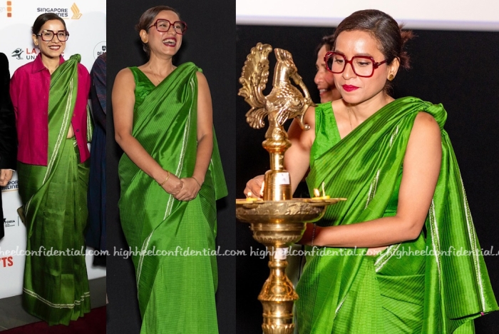 Tillotama’s movie was the opening night movie of IFF Melbourne 2025 and the actor was seen in a green sari from Medium paired with a hot pink jacket. From what I see, I like.