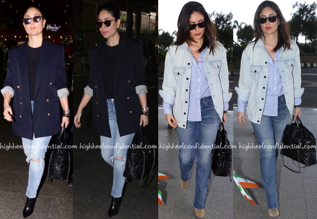 Teaming her denims with boots, jackets and a roomy Chanel tote, Kareena raked in some miles recently. Her off-duty look works.
