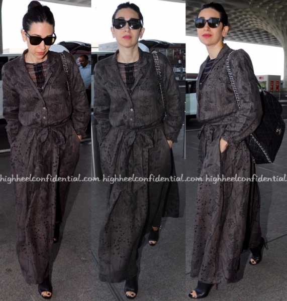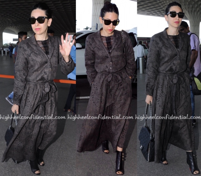 As she was headed in to the airport, Karisma was photographed in an Anavila dress. Her choice of accessories included a Chanel bag and pair of Louboutin booties. She made it all work!