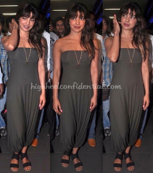 I am speechless and disappointed, because I like Priyanka. But this is an ugly jumpsuit, althouth she carries it well only because she is so thin. Did she really wear that while travelling…amazing. I like her new bangs, which when styled will probably suit her face.