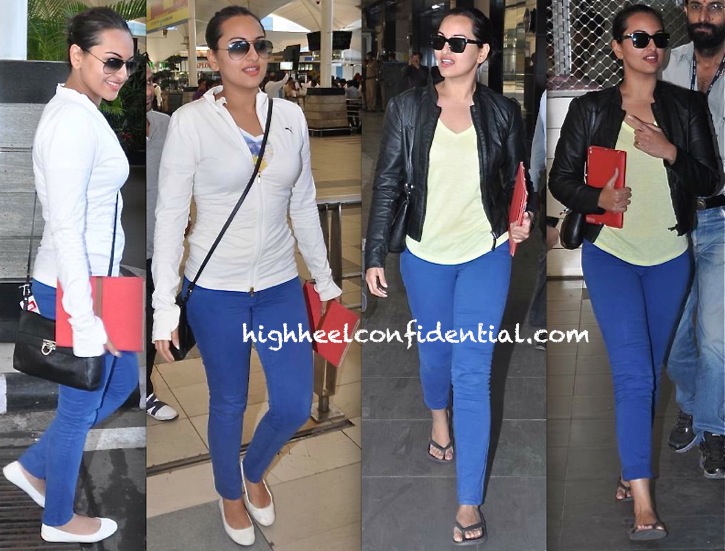Sonakshi Sinha Photographed At The Airport In February ’13 (Left) And January ’13