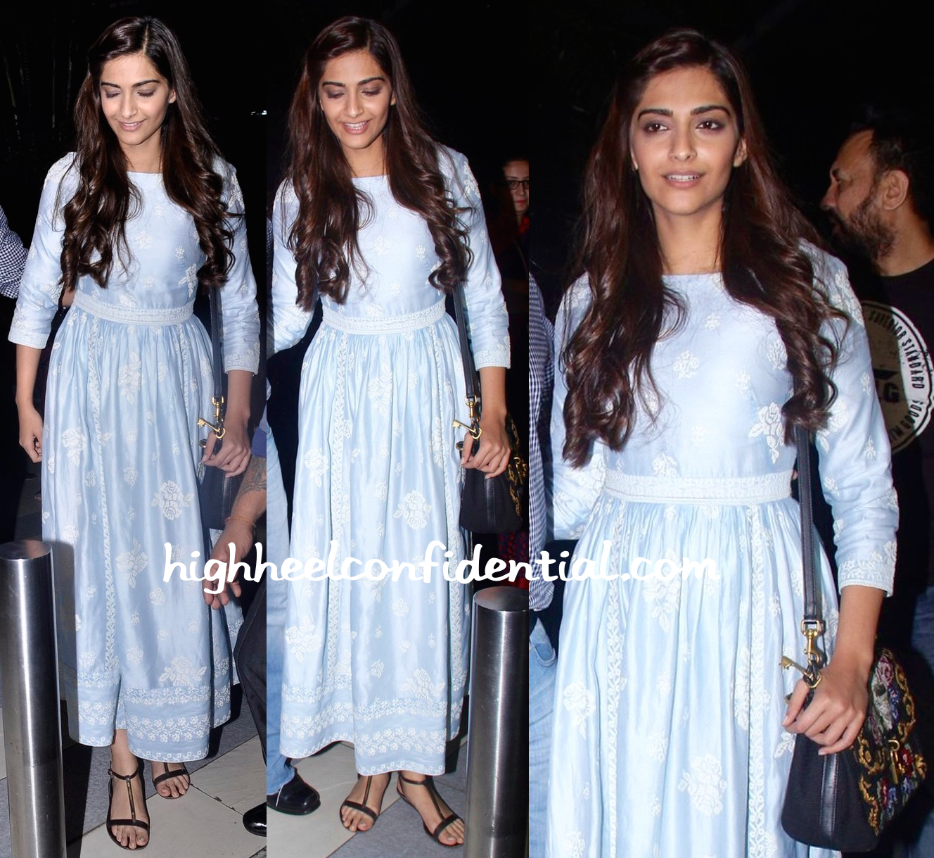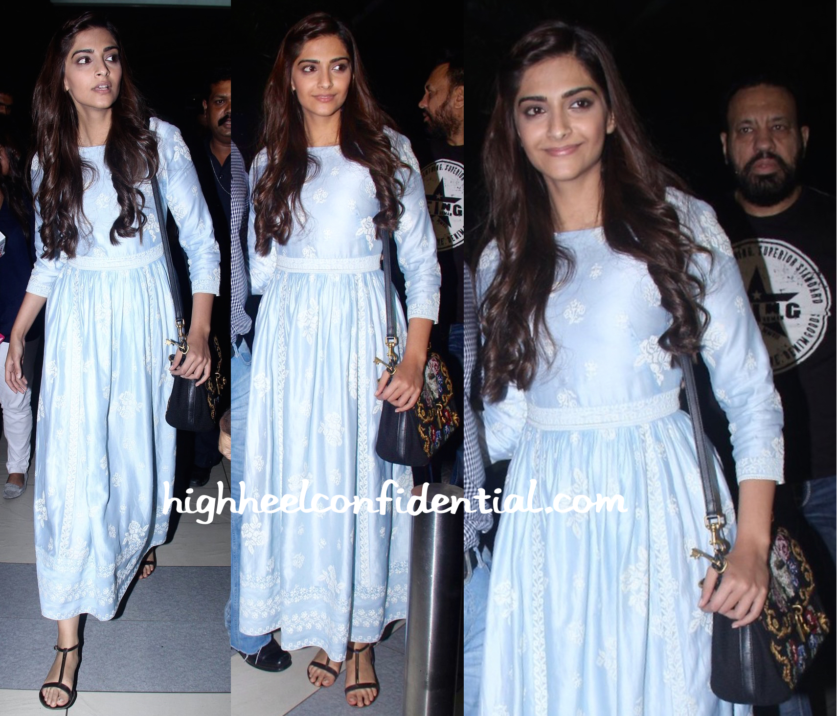 Wearing a Payal Pratap dress with black accessories, Sonam was photographed as she exited the Mumbai airport a couple of days ago. Fuss-free and easy; she looked nice.