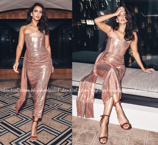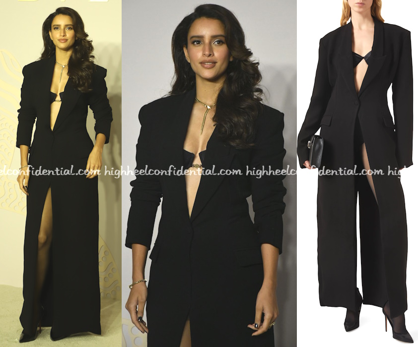 Tripti attended the Bvlgari exhibition opending wearing a Monot maxi blazer dress with a what looked like was a Versace bra paired with a Bvlgari Serpenti necklace. Even with the exposed bra, this to me still felt a bit safe. She looked nice, but Tripti can look way better.