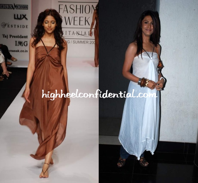 i know what you mean Payal. The runway and the other image is somehow very vanilla..almost like a DIY dress. no thought or effort. The white look seems like it was made from the remains of a dupatta and hence the poor finish.