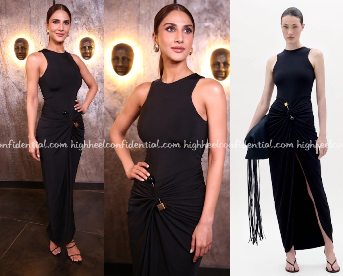 Vaani was part of a year end panel talk and wore a black sleeveless dress from Silvia Tcherassi with minimalist sandals. She looked great in it!
